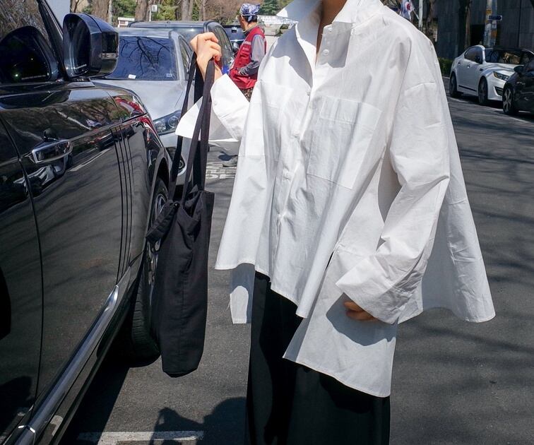 シャツ アシンメトリー ルーズ オーバーシルエット トップス ブラウス 白シャツ 白 トップス 袖あり 長袖 襟付き きれいめ シンプル 大人 上品 おしゃれ お洒落 かっこいい 個性的 モード系 エレガント 主役級 存在感 フォーマル 無地 春 秋 入学式 入園式 卒業式 卒園式 謝恩会 20代 30代 40代 50代 60代 レディース 女性用 ママ ビジネス OL お出かけ 韓国 ファッション スタイル S M L XL 白 ホワイト 素敵 ステキ マニッシュ 後ろ長い 体系カバー