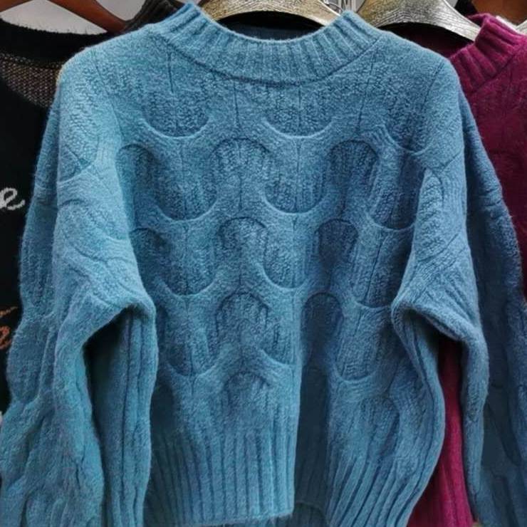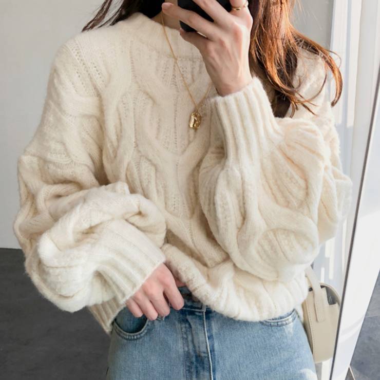 トップス レディース セーター ショート ツイストセーター プルオーバー ショート丈 長袖 ボリューム袖 ランタンスリーブ パフスリーブ ラウンドネック 丸襟 ケーブルニット 厚手 セーター ニット シンプル ルーズ ゆったり ふんわり 韓国スタイル 可愛い ラブリー ラフ ガーリー 無地 秋 冬 10代 20代 通勤 通学 休日 お出かけ 普段使い 暖かい 防寒 送料無料 S M L XL きれい色 オフホワイト パープル ブルー ボルドー ベージュ イエロー ピンク レッド カラバリ 存在感 主役級