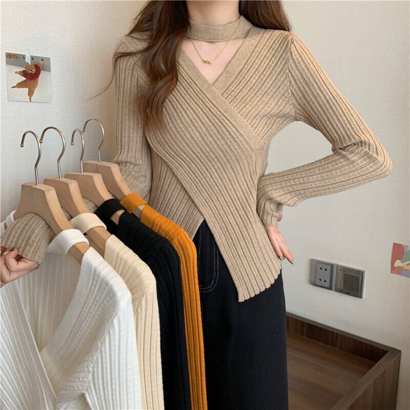 トップス レディース ニットソー セーター 長袖 Vネック クロスデザイン リブニット スリムフィットセンス ニッチ ストレッチ ホワイト 白 オフホワイト ブラック 黒 カラバリ 薄手 ミッドレングス 上着 ボトミングシャツ プルオーバー秋 冬 大人可愛い ルーズ エレガント カジュアル ナチュラル フェミニン おしゃれ 大人っぽい かわいい セクシー ワンサイズ シンプル 上品 10代 20代 30代 モテ プチプラ 通学 休日 女子会 お出かけ 普段使い 重ね着 定番 着回し 送料無料