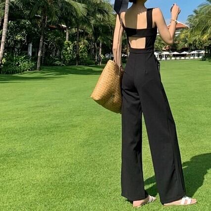ジャンプスーツ レディース オールインワン レトロ ファッショナブル フォーマル ブラック 黒 きれいめ お姉 ゆったり ノースリーブ ワイドパンツ きれいめ リゾート 海 シンプル 無地 春夏 リゾートコード 海 水着の上に 韓国風 セクシー 男ウケ もてコーデ あざとい リゾートコーデ ハイウエストママ 夏服 20代 30代 40代 レディースファッション 旅行 動きやすい バックオープン スタイルアップ スリム 細身 タイト エレガント フォーマル SS 今季 オールインワン パンツ