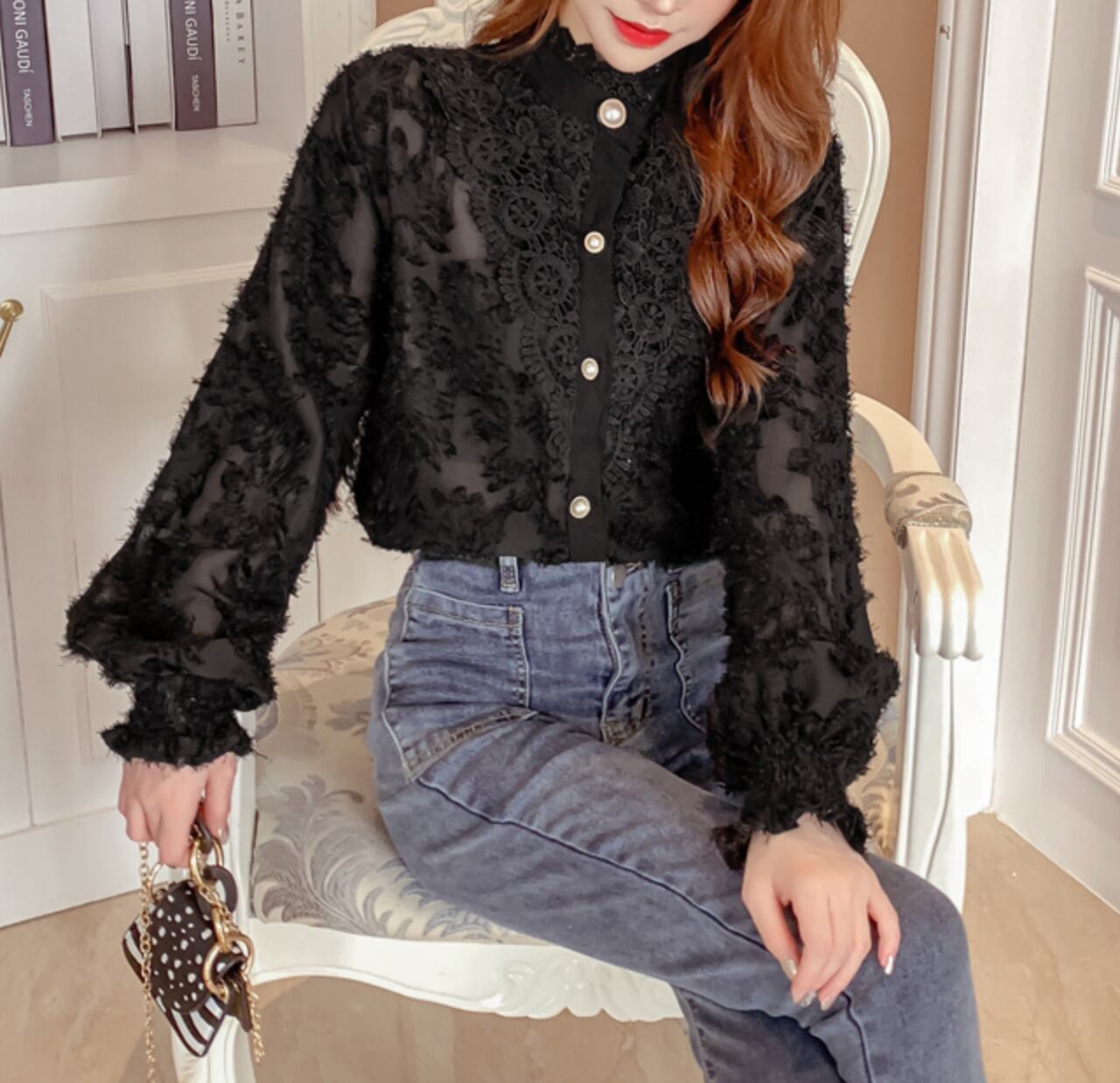 ふんわりレースが可愛い3色展開のブラウスです。