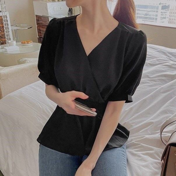 レディース トップス シャツ フレア フリル サープリスネック ウエストマーク 美シルエット Vネック プルオーバー 大人可愛い きれいめ おしゃれ こなれ感 10代 20代 30代 40代 50代 OL 学生 ママ S M L XL ブラック 黒色 ホワイト 白色 無地 リボン 送料無料 トレンド ワイド プリーツ デート お出かけ 休日 旅行 入学式 入園式 卒園式 公園デビュー 女子会 アウトドア イベント 普段使い 細見え スタイルアップ ファッション コーデ 楽ちん 定番 カジュアル