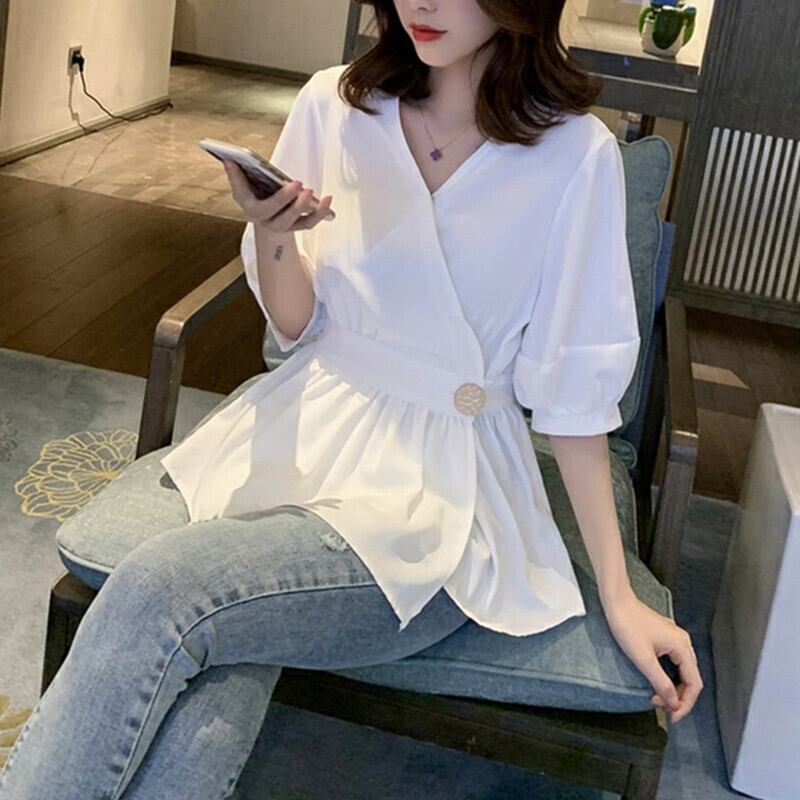レディース トップス フレア Aライン フリル Vネック サープリスネック パフスリーブ スリム ウエストマーク 美シルエット ハイウエスト 半袖 きれいめ 女っぽ シンプル おしゃれ ラフ ゆったり 大きいサイズ 10代 20代 30代 40代 50代 OL 学生 ママ M L XL 2XL 3XL 4XL ホワイト 白色 無地 ガーリー キュート 送料無料 トレンド 上品 韓国 流行 フォーマル デート お出かけ 休日 旅行 イベント 普段使い コーデ 楽ちん 定番 インスタ映え カジュアル こなれ感