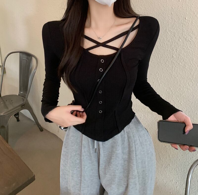 トップス Tシャツ クロス カシュクールタイトフィットタイト 細見 フィット セクシー 胸開き 長袖 無地 胸元セクシー ショート丈 カジュアル 可愛い シンプル 無地 春夏 着痩せ クロップド丈 オーバー きれいめ 女性 おしゃれ ラフ 10代 20代 30代 57代 学生 ダンス トレンド 上品 韓国風 韓国服 流行 デート お出かけ 休日 旅行 女子会 ファッション コーデ 楽ちん インスタ映え カジュアル こなれ感 イベント 普段使い 細見え スタイルアップ
