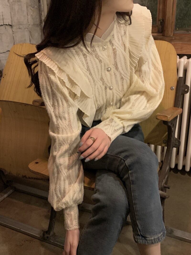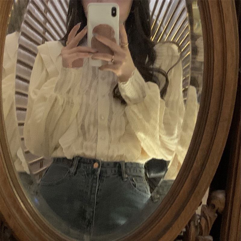 トップス レディース シャツ ブラウス レース スタンドカラー ボリューム袖 バルーンスリーブ ランタンスリーブ 無地 レトロ トレンド フリル パールボタン 大きいサイズ スタイリッシュ ドロップショルダー 薄手 シースルー 透け感 大人可愛い 大人 カジュアル セクシー フェミニン きれいめ 韓国 エレガント きちんと感 上品 おしゃれ お洒落 清楚 春 夏 秋 2022 新作 送料無料 二次会 お出かけ デート 旅行 買い物 飲み会 同窓会 ベージュ S M L XL 10代 20代 30代
