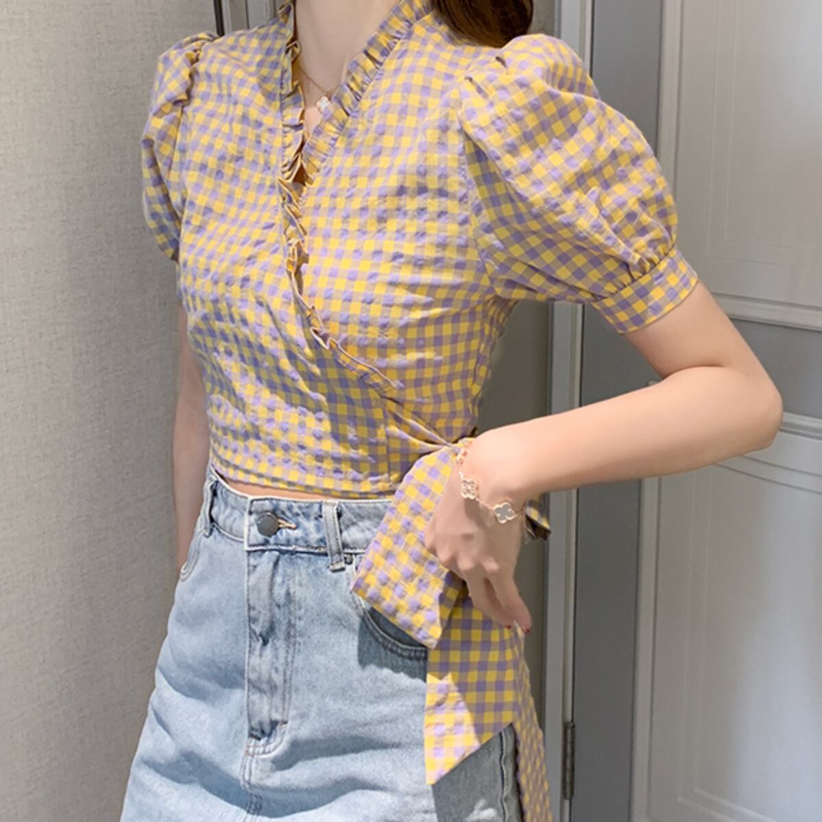 トップス ブラウス 袖あり 半袖 Vネック かわいい 大人っぽ きれいめ シンプル カジュアル 大人 上品 おしゃれ お洒落 大人可愛い 大人女子 こなれ感 ラフ キュート ガーリー 個性的 エレガント 存在感 抜け感 フェミニン チェック柄 春 秋 冬 10代 20代 30代 レディース 女性用 オフィス ビジネス OL 通勤 学生 通学 デート お出かけ パーティー イベント 旅行 着回し 普段使い お揃い 双子 韓国 オルチャン ファッション S M L XL イエロー パープル 送料無料