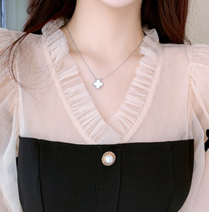 パフスリーブにあしらわれたリボンで甘さアップ。