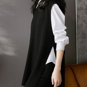 トップス レディース シャツ ロングベストセット スリット スリム ロング丈 ハイネック エレガント レディース ブラック 黒色 楽ちん こなれ感 ラフ カジュアル スタイルアップ 大人可愛い きれいめ シンプル おしゃれ 着やせ 韓国風 OL 学生 ママ 10代 20代 30代 40代 50代 M L XL デート お出かけ 女子会 休日 アウトドア イベント 旅行 入学式 入園式 卒園式 公園デビュー ファッション コーデ 定番 送料無料 インスタ映え 女っぽ 大人っぽ 着回し 普段使い
