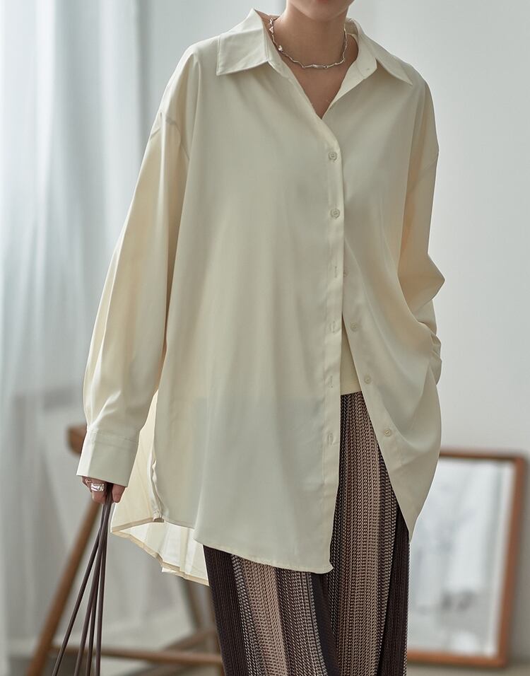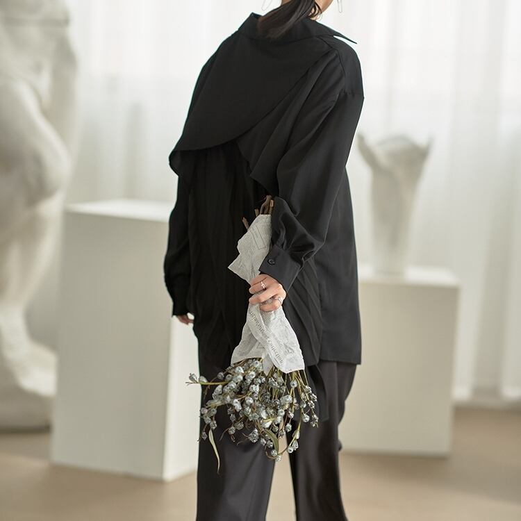 トップス レディース シャツ オーバーシャツ ブラウス セミロング丈 バックプリーツ バックコンシャス 無地 長袖 ゆったり ビッグシルエット オーバーサイズ レンド 大人女子 クール 大人可愛い キュート フェミニン 上品 大人女子 体型カバー 着痩せ おしゃれ カジュアル 着回し 楽ちん お洒落 春 秋 新作 送料無料 普段使い デイリー お出かけ デート カフェ ランチ ショッピング 女子会 休日 旅行 ワンサイズ フリーサイズ 2色展開 オフホワイト ブラック 10代 20代 30代 40代