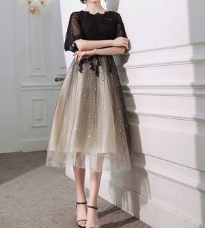 ワンピース レディース ドレス ワンピースドレス レース チュール 透け感 スパンコール グリッター 異素材ミックス ミディアム丈 ミモレ丈 ひざ下丈 ラウンドネック 背中開き レースアップ 半袖 フレアスリーブ フレア Aライン トレンド レトロ エレガント シック おしゃれ フェミニン 脚長効果 大人女子 大人可愛い キュート かわいい 細見え 春 夏 新作 送料無料 きれいめ パーティー 結婚式 二次会 衣装 女子会 大きいサイズ S M L XL 2XL ブラック 20代 30代 40代