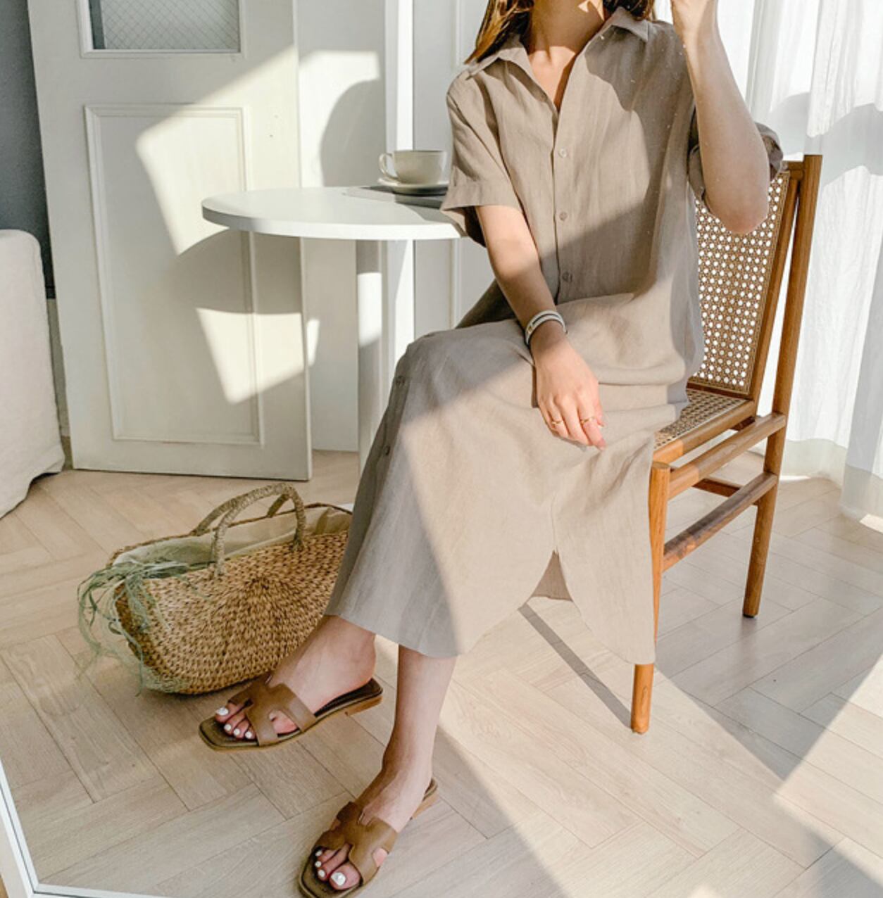 ワンピース レディース シャツ ミモレ丈 袖あり 半袖 Vネック 襟付き ストレート かわいい 大人っぽ きれいめ シンプル カジュアル 大人 上品 おしゃれ お洒落 大人可愛い 大人女子 こなれ感 ラフ ゆったり ガーリー ルーズ 個性的 とろみ感 抜け感 無地 夏 10代 20代 30代 レディース 女性用 学生 通学 デート お出かけ 休日 アウトドア 旅行 着回し 普段使い お揃い 双子 韓国系 オルチャン ファッション コーデ スタイル 楽ちん S M L XL カーキ ホワイト 白色 送料無料