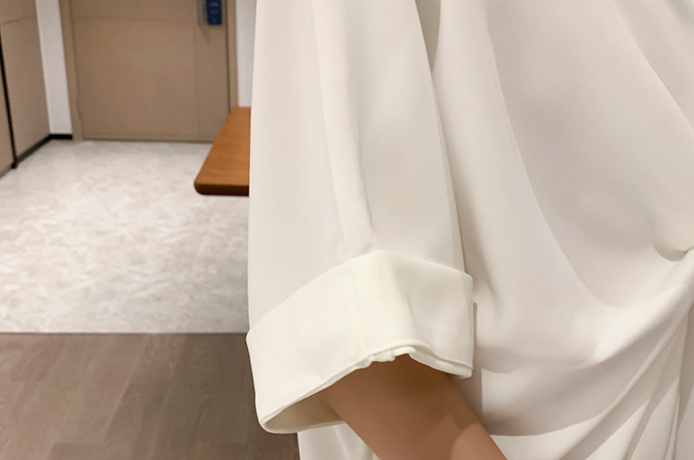 ワンピース 白シャツ ロング丈 袖あり 半袖 Vネック ストレート かわいい 大人っぽ きれいめ シンプル カジュアル 大人 上品 おしゃれ お洒落 大人可愛い 大人女子 こなれ感 ラフ ガーリー ルーズ 個性的 クール 存在感 とろみ感 抜け感 無地 春 夏 10代 20代 30代 レディース 女性用 学生 通学 デート お出かけ アウトドア リゾート 着回し 普段使い 重ね着 お揃い 双子 韓国系 オルチャン ファッション スタイル 楽ちん 体系カバー M L XL 2XL 白 ホワイト 送料無料