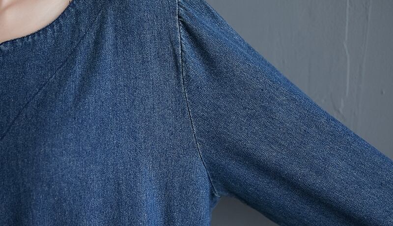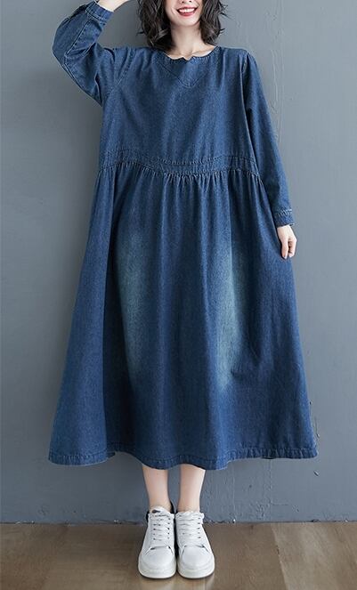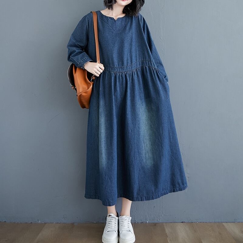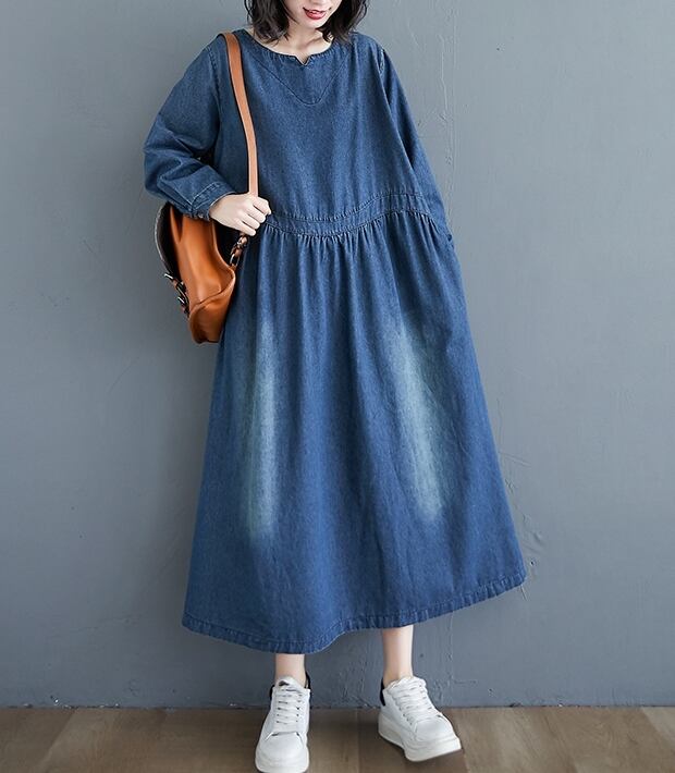 ワンピース オールインワン デニム ロングスカート フレアスカート デニムワンピース 膝下 ロング丈 マキシ丈 長袖 ボリューム袖 レディース フレアワイド Aライン ブルーデニム 襟なし 体型カバー 個性的 レトロ フェミニン 大人可愛い きれいめ シンプル おしゃれ こなれ感 ラフ 無地 ウエストマーク 10代 20代 30代 40代 50代 OL 学生 M L XL 2XL ママ デート お出かけ 公園デビュー 女子会 休日 着回し 普段使い 楽ちん 送料無料 インスタ映え 女っぽ 大人っぽ