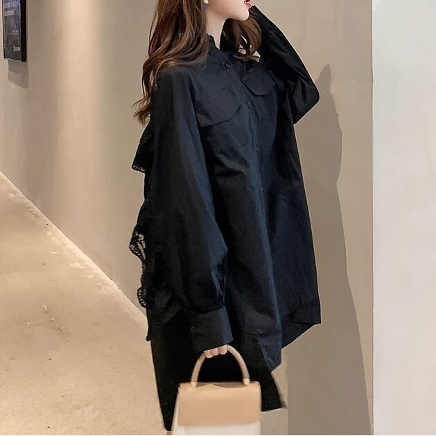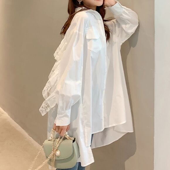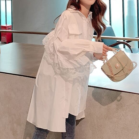 シャツワンピ ワンピース ビッグシルエット レース バックスタイル ロングスカート 大きいサイズ フレアスカート 膝上 ミニ丈 長袖 ボリューム袖 レディース フレアワイド Aライン 前開き 体型カバー 個性的 レトロ フェミニン 無柄 大人可愛い きれいめ シンプル おしゃれ こなれ感 ラフ 10代 20代 30代 40代 50代 OL 学生 XL 2XL 3XL 4XL ママ デート お出かけ 公園デビュー 女子会 休日 アウトドア イベント 旅行 着回し 送料無料 インスタ映え 女っぽ 大人っぽ