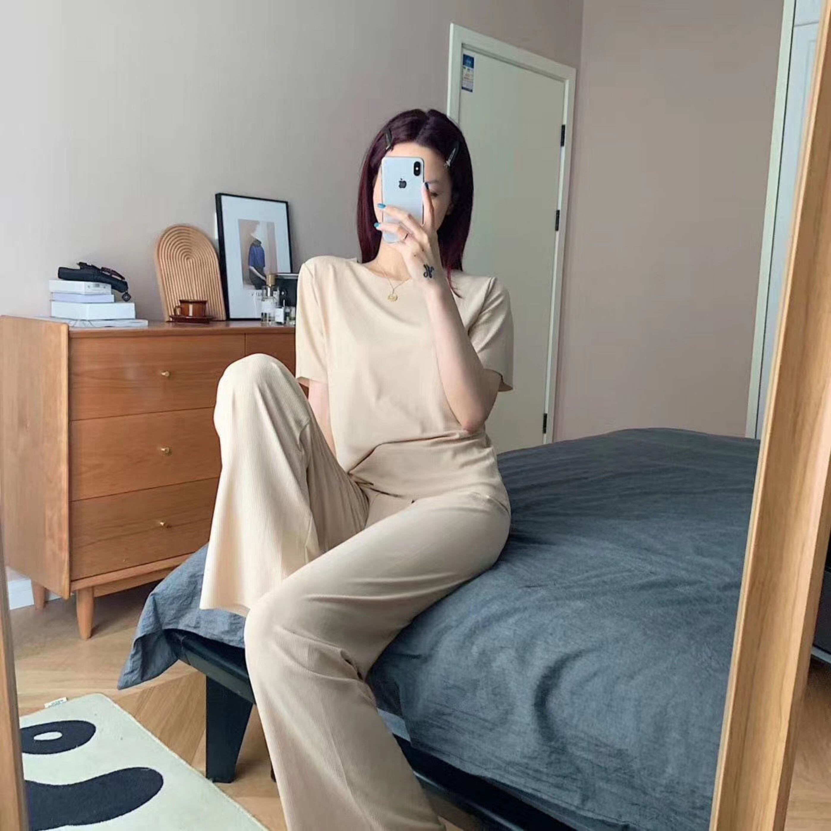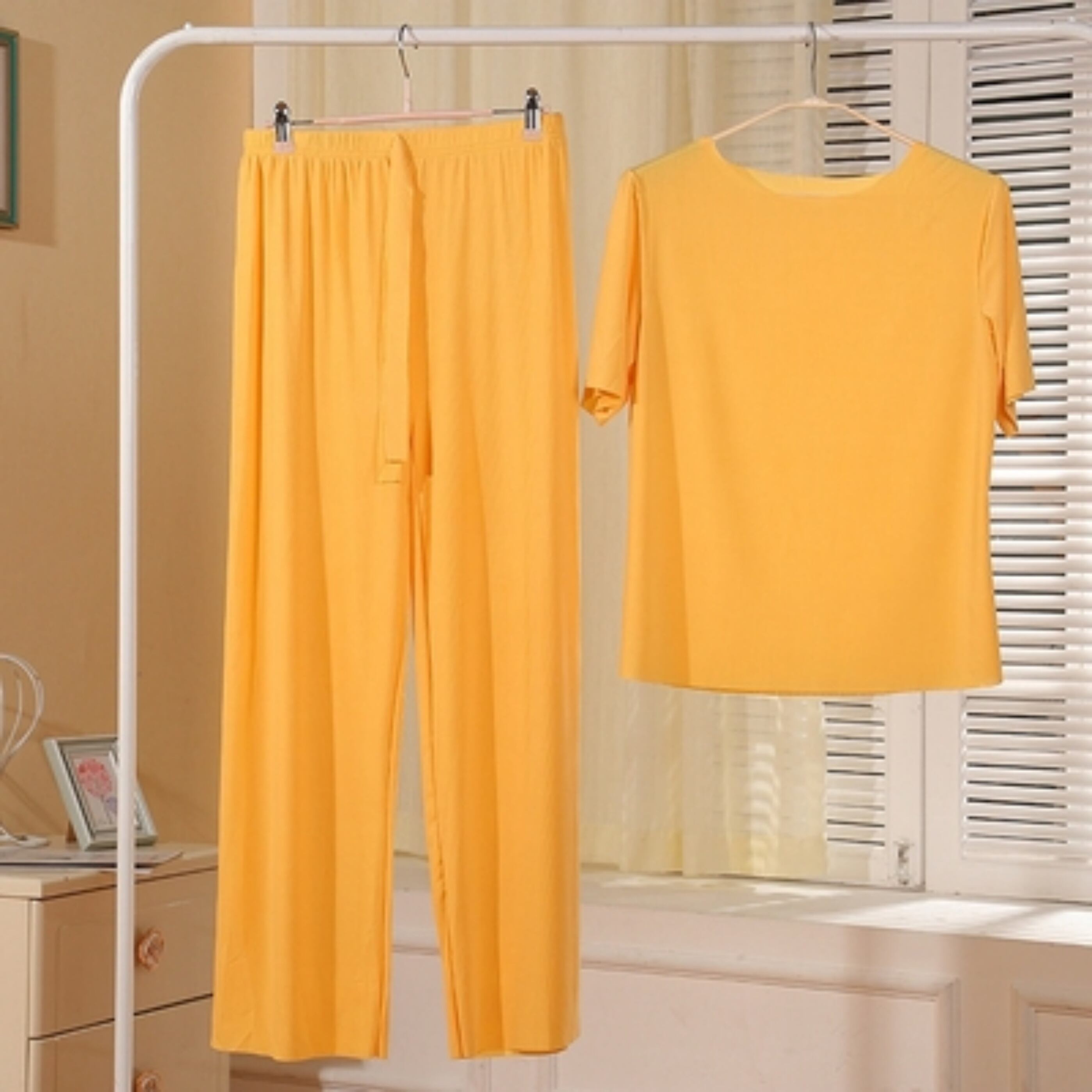 セットアップ ルームウェア パジャマ Tシャツ 部屋着 寝巻き ナイトウェア ストレートパンツ シャツワンピース シャツワンピ ミニ丈 ショート丈 ロング丈 袖あり 半袖 Uネック 襟なし ストレート 上下セット 2点セット ツーピース かわいい シンプル カジュアル おしゃれ お洒落 ラフ 無地 夏 10代 20代 30代 レディース 女子会 お泊まり 休日 普段使い 韓国 韓国系 楽ちん 送料無料 フリーサイズ 7色 黒 ブラック ベージュ 緑 グリーン 黄色 イエロー ピンク 水色 灰色 グレー