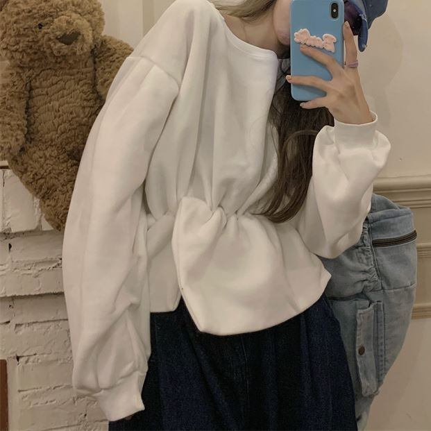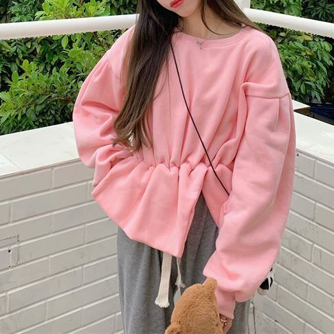 トップス レディース プルオーバー トレーナー 袖あり 長袖 ラウンドネック クルーネック ボリューム袖 ロングスリーブ 無地 ウエスト絞り ペプラム風 大きいサイズ オーバーサイズ 大きめ フレア 切替 ドロップショルダー 体型カバー スリット 大人可愛い カジュアル ガーリー 韓国 春 秋 冬 シーズンレス 2022 新作 送料無料 お出かけ デート ダンス 女子会 通学 学生 普段着 デイリー 着回し 白 ホワイト 黄色 イエロー ピンク フリーサイズ ワンサイズ 10代 20代 30代
