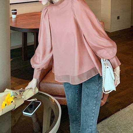 トップス レディース シャツ ブラウス プルオーバー チュニック シフォン 袖あり 長袖 ハイネック タートルネック ボリューム袖 ぽわん袖 無地 バックリボン ゆったり 大きいサイズ 大きめ フレア 切替 ドロップショルダー 体型カバー 薄手 シースルー 透け感 大人可愛い カジュアル フェミニン きれいめ 韓国 エレガント 春 夏 秋 冬 シーズンレス 2022 新作 送料無料 二次会 お呼ばれ お出かけ デート 着回し 白 ホワイト ピンク S M L XL 10代 20代 30代 40代