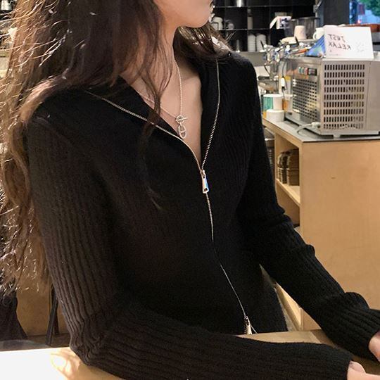 トップス レディース ニットソー カーディガン ニット リブニット ショート丈 長袖 Vネック ロングスリーブ 無地 トレンド ダブルジップ フルジップ 羽織り 前開き 大人 おしゃれ スマート 細身 スタイリッシュ 体型カバー スリット 着痩せ 大人可愛い カジュアル フェミニン こなれ感 韓国 シンプル ラフ 春 秋 冬 2022 新作 送料無料 お出かけ 通勤 デート 女子会 通学 普段着 デイリー 着回し 白 ホワイト 黒 ブラック S M L 10代 20代 30代 40代 50代