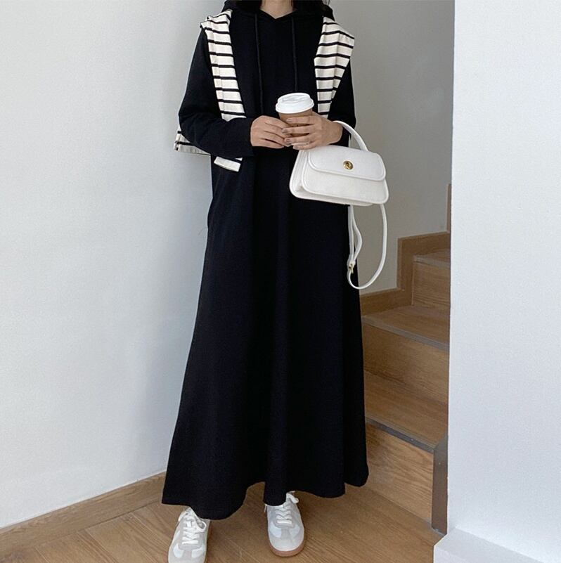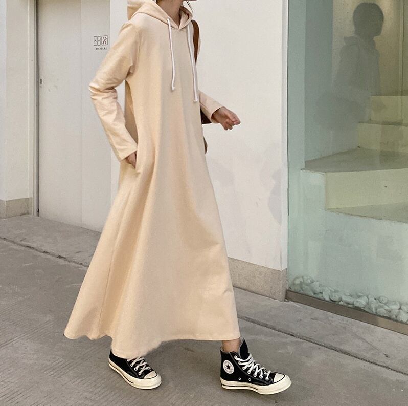 ワンピース パーカーワンピース スウェットワンピース プルオーバー パーカー ロングスカート ロング ロング丈 マキシ丈 袖あり 長袖 Aライン フード フード付き ポケット かわいい シンプル カジュアル おしゃれ お洒落 無地 春 秋 冬 10代 20代 30代 40代 レディース 学生 通学 デート お出かけ 公園デビュー お泊まり 旅行 普段使い 楽ちん 体系カバー 送料無料 フリーサイズ ゆったり 4色展開 黒 ブラック 茶色 ブラウン 灰色 グレー ベージュ 春カラー 秋カラー