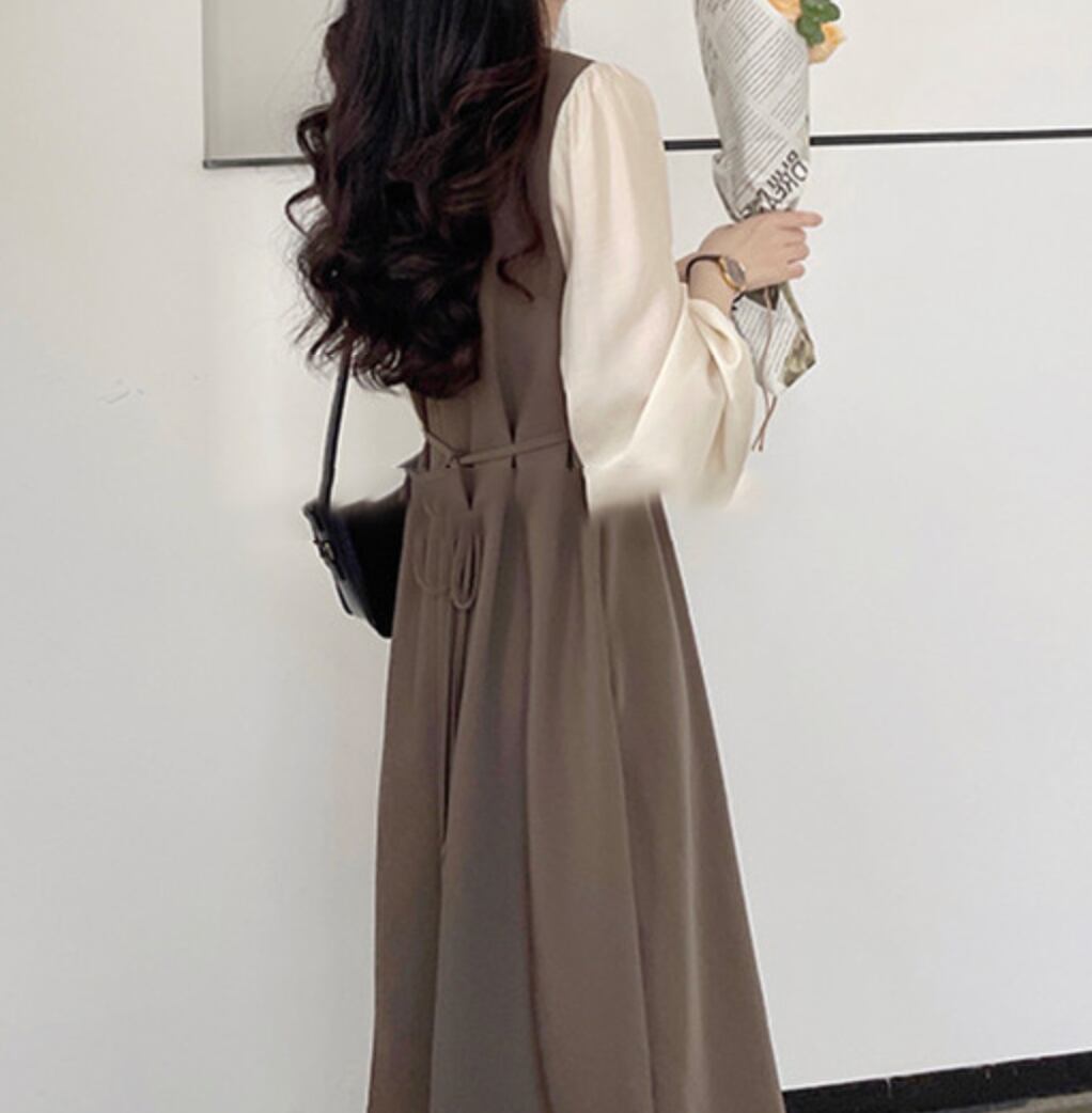 ワンピース ミモレ丈 袖あり 長袖 Aライン かわいい 大人っぽ きれいめ シンプル カジュアル 大人 上品 おしゃれ お洒落 大人可愛い 大人女子 こなれ感 ラフ キュート ガーリー ルーズ 個性的 主役級 存在感 とろみ感 抜け感 フェミニン 無地 春 秋 冬 10代 20代 30代 レディース 女性用 学生 通学 デート お出かけ 旅行 着回し 普段使い 重ね着 お揃い 双子 韓国系 オルチャン ファッション コーデ スタイル 楽ちん 体型カバー S M L XL ゆったり 茶色 ブラウン 送料無料