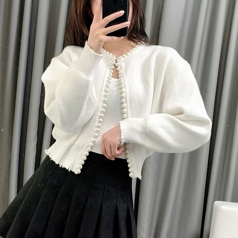 トップス レディース カーディガン パール パフスリーブ 長袖 襟なし ショート丈 大人可愛い きれいめ 大人っぽ 女っぽ シンプル おしゃれ ラフ ゆったり 10代 20代 30代 40代 50代 上品 韓国 流行 華やか セクシー ワイド ボリューム デート お出かけ 休日 旅行 入学式 入園式 卒園式 公園デビュー 女子会 アウトドア イベント 普段使い 細見え スタイルアップ ファッション コーデ 楽ちん 定番 カジュアル スタイリッシュ こなれ感