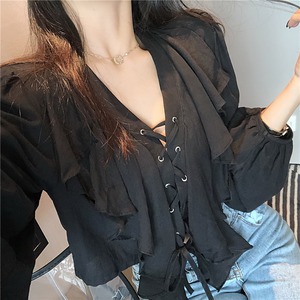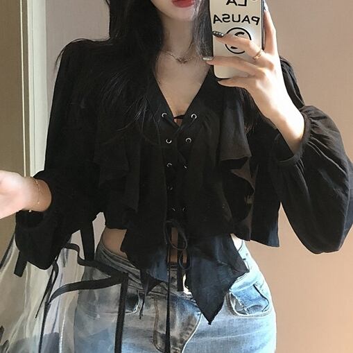 トップス シャツ パフスリーブ スリム 前開き 編み上げ リボン フリル ショート丈 レディース 女性用 個性的 クール 主役級 存在感 とろみ感 抜け感 上品 楽ちん こなれ感 ラフ カジュアル 韓国風 大人可愛い きれいめ シンプル おしゃれ 着やせ スタイルアップ OL 学生 ママ 10代 20代 30代 40代 50代 デート お出かけ 女子会 休日 アウトドア イベント 旅行 入学式 入園式 卒園式 公園デビュー ファッション コーデ 定番 送料無料 インスタ映え 女っぽ 大人っぽ