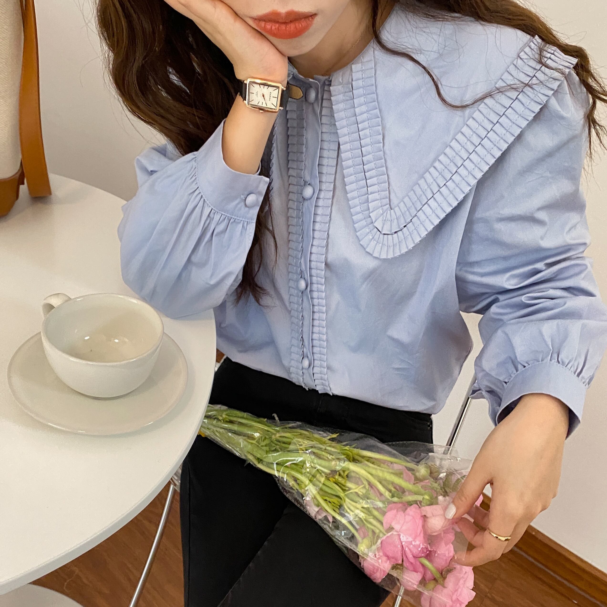 トップス レディース シャツ ブラウス 長袖 ビッグカラー ドールカラー ロングスリーブ 無地 ベーシック トレンド フロントボタン ゆったり 大きいサイズ 大きめ ドロップショルダー 体型カバー 薄手 大人可愛い かわいい カジュアル フェミニン きれいめ 韓国 シンプル 上品 清楚 春 夏 秋 冬 オールシーズン シーズンレス 2022 新作 送料無料 通勤 オフィス 通学 デイリー 着回し ビジネス オフィスカジュアル 白 青 M L XL 2XL 3XL 4XL 20代 30代 40代