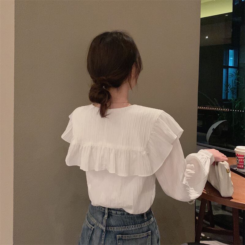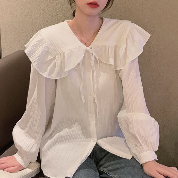 フリルのついた大きな襟がガーリーで可愛いアイテム。