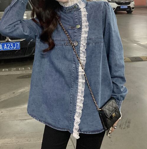 トップス シャツ デニムシャツ 袖あり 袖 長袖 フリル クール かわいい 大人可愛い きれいめ シンプル 大人 上品 おしゃれ お洒落 大人女子 ラフ ガーリー セクシー 主役級 存在感 フォーマル 無地 夏 10代 20代 30代 レディース 女性用 ママ オフィス 通勤 デート お出かけ 公園デビュー 女子会 お泊まり 休日 パーティー レストラン 着回し 普段使い 重ね着 韓国系 ファッション コーデ スタイル 楽ちん モテ 送料無料 トレンド インスタ映え ワンサイズ デニム ブルー