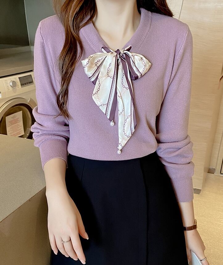 リボンが可愛らしいニットセーター。