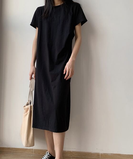 レディース ワンピース Aライン ミモレ丈 ハイウエスト ウエストマーク 半袖 無地 楽ちん こなれ感 ラフ カジュアル スタイルアップ 大人可愛い きれいめ シンプル おしゃれ 着やせ 韓国風 OL 学生 ママ 上品 流行 華やか セクシー 10代 20代 30代 40代 50代 デート お出かけ 女子会 休日 アウトドア イベント 旅行 入学式 入園式 卒園式 公園デビュー ファッション コーデ 定番 送料無料 インスタ映え 女っぽ 大人っぽブラック S M L XL 2XL