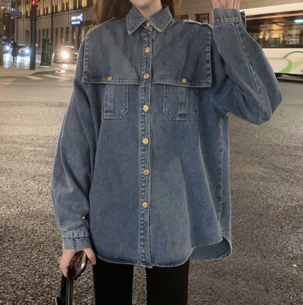 トップス シャツ 袖あり 長袖 襟付き デニム かわいい 大人可愛い きれいめ シンプル カジュアル 大人 上品 おしゃれ お洒落 かっこいい 大人可愛い 大人女子 こなれ感 ラフ ガーリー ルーズ 個性的 クール 主役級 存在感 抜け感 無地 春 秋 冬 10代 20代 30代 レディース 女性用 学生 通学 デート お出かけ アウトドア 旅行 着回し 普段使い 重ね着 お揃い 双子 韓国系 オルチャン コリアン ファッション コーデ スタイル 楽ちん 体系カバー ワンサイズ ゆったり ゆる 青 ブルー