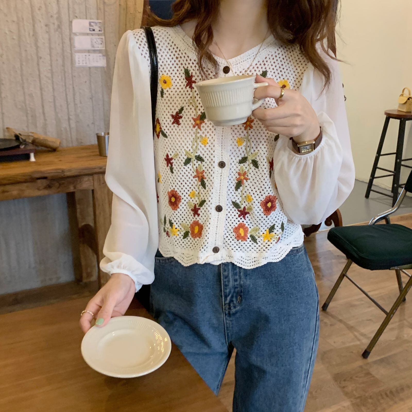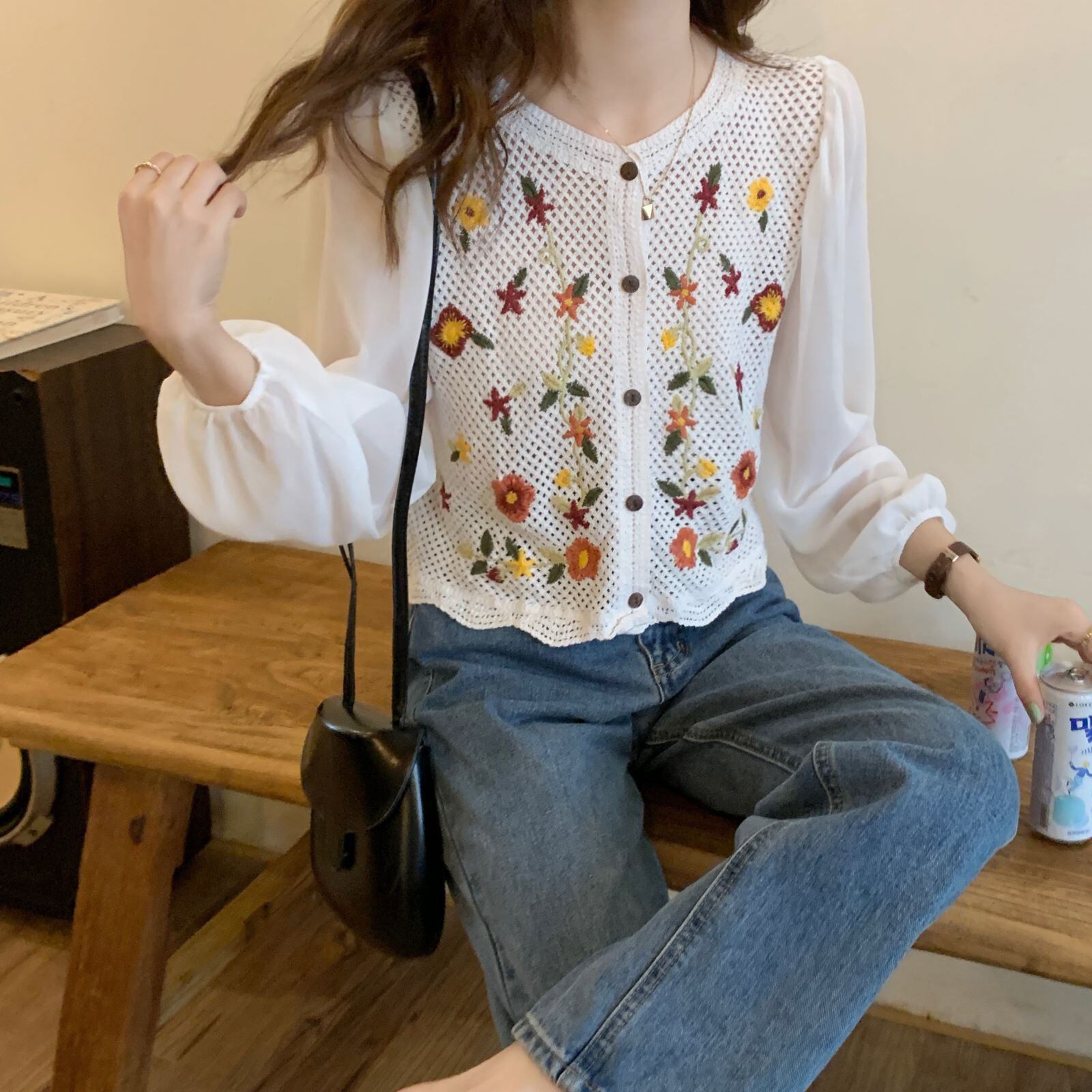 トップス ブラウス カーディガン 袖あり 長袖 ラウンドネック レース 刺繍 編み込み 透け感 シースルー ニット かわいい 大人可愛い 大人 おしゃれ お洒落 レトロ アジアン 大人女子 こなれ感 ラフ 個性的 主役級 存在感 花柄 フラワー 10代 20代 30代 レディース 女性用 学生 デート お出かけ 公園デビュー 女子会 お泊まり 休日 着回し 普段使い 重ね着 韓国系 ファッション コーデ 楽ちん モテ 送料無料 トレンド インスタ映え ホワイト オフホワイト 大人カラー