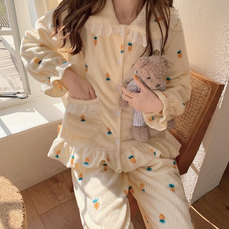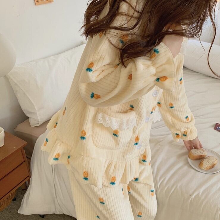 ルームウェア 送料無料 レディース 上下セット 2点セット イエロー オレンジ 襟付き パジャマ 部屋着 寝間着 韓国 長袖 長ズボン 春 春カラー パステルカラー 可愛い オシャレ お洒落 ガーリー キュート フェミニン人気 話題 SNS インスタ映え お揃い 双子コーデ トレンド ママ 10代 20代 プレゼント ギフト お祝い 誕生日 旅行 修学旅行 リゾート 女子会 お家デート お泊まり リラックス 快適 ナイトウェア ホームウェア 愛らしい 清楚 女の子 ポケット フリル M L XL