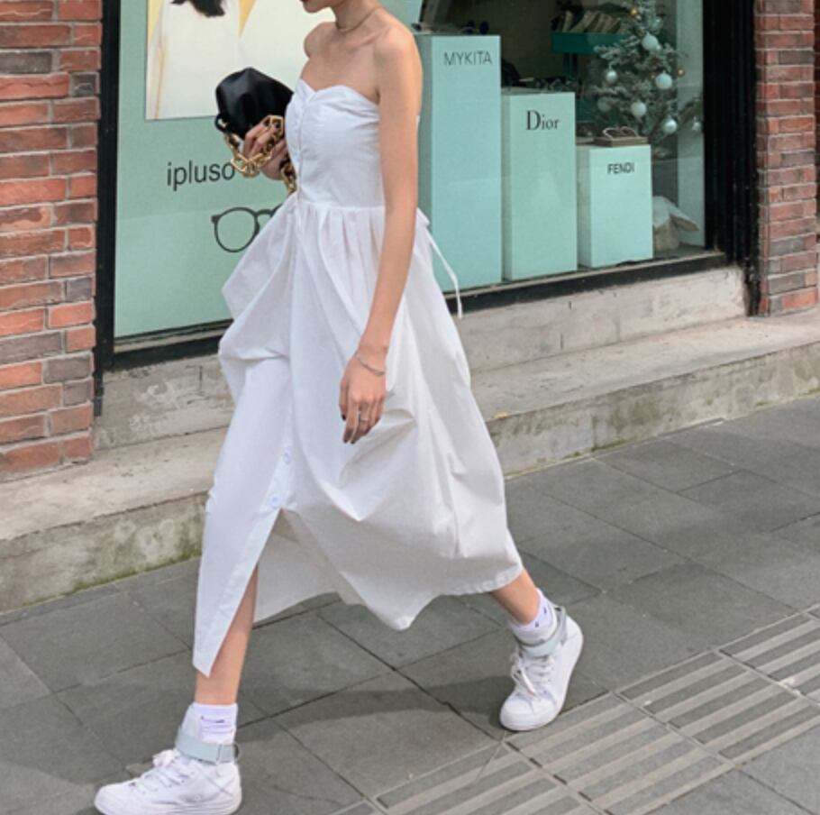 ワンピース シャツ 白シャツ ミモレ丈 袖なし オフショルダー Aライン プルオーバー ハイウエスト かわいい 大人っぽ きれいめ シンプル カジュアル 大人 上品 おしゃれ お洒落 大人可愛い 大人女子 こなれ感 ラフ ルーズ 個性的 クール セクシー 主役級 存在感 とろみ感 抜け感 無地 夏 10代 20代 30代 レディース 女性用 お出かけ 休日 アウトドア リゾート 旅行 着回し 普段使い 重ね着 お揃い 韓国 オルチャン ファッション コーデ 楽ちん XS S M L 白 ホワイト 送料無料