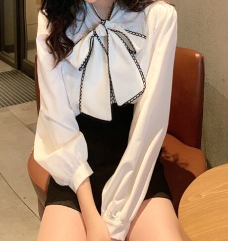 トップス ブラウス リボン リボンタイ 長袖 襟付き レディース シャツ 無地 トレンド 大きいサイズ スマート 細身 スタイリッシュ 薄手 大人可愛い かわいい カジュアル フェミニン ガーリー 韓国 キュート ラブリー おしゃれ 上品 清楚 春 夏 秋 2022 新作 送料無料 お出かけ デート 普段着 デイリー 着回し 白 ホワイト ブラック レッド ワンサイズ 10代 20代 30代 40代