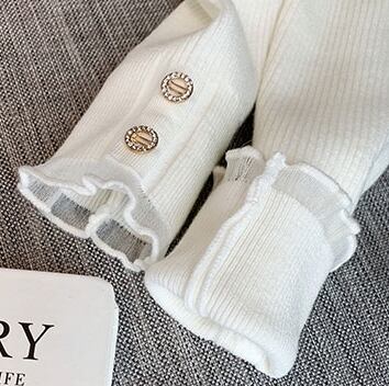 オシャレなハイネックに、襟元と袖元にレース&飾りボタンで可愛さも◎