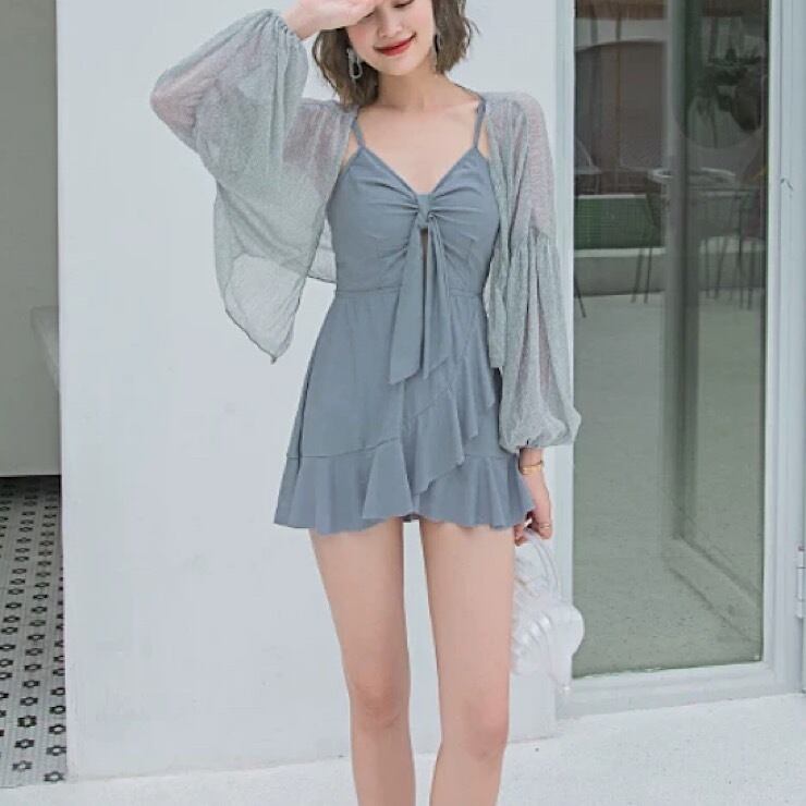 水着 送料無料 2way レディース スイムウェア ワンピース ミニスカート フリル リボン カーディガン 長袖 グレー 体型カバー 美脚効果 脚長効果 大人可愛い 日焼け防止 海 プール 海水浴 夏 夏休み 旅行 海外旅行 修学旅行 リゾート フェス デート マリンスポーツ ウォータースポーツ 川遊び お揃い 双子コーデ 友だち 親子 M L XL 2XL オシャレ お洒落 フェミニン キュート ガーリー プレゼント ギフト 誕生日 誕生日プレゼント 女の子 10代 20代 30代 ママ 人気 話題