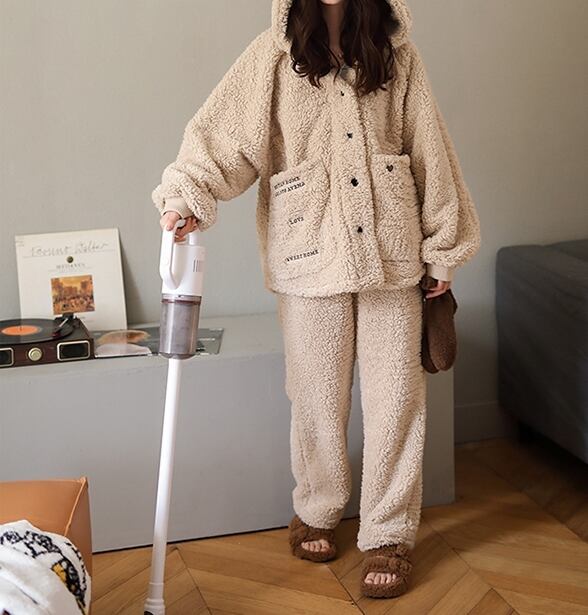 ルームウェア パジャマ 部屋着 寝巻き ナイトウェア 着ぐるみ 袖あり 長袖 もこもこ モコモコ ふわふわ フード付き ポケット 前開き 厚手 上下セット 2点セット お得 かわいい 大人可愛い 大人 おしゃれ お洒落 ラフ ガーリー 主役級 存在感 柄 冬 10代 20代 30代 レディース 女性用 ママ 女の子 女子会 お泊まり 休日 普段使い ファッション コーデ スタイル 楽ちん 暖かい モテ プレゼント ギフト 送料無料 トレンド インスタ映え 大きめ ゆったり ベージュ 大人カラー 耳 耳付き