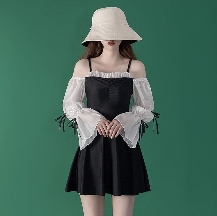 水着 スイムウェア ワンピース水着 体系カバー水着 短パン ワンピース セパレート オフショルダー オフショル パッド付き 体系カバー 二の腕カバー 長袖 リボン フリル 透け感 シースルー 胸元 盛れる 露出控え目 セット 2way かわいい 大人可愛い シンプル カジュアル 華やか おしゃれ お洒落 ラブリー キュート ガーリー 無地 10代 20代 30代 レディース 夏 海 ビーチ プール リゾート 旅行 温泉 韓国系 送料無料 サイズ M L XL 白 ホワイト 黒 ブラック モノトーン