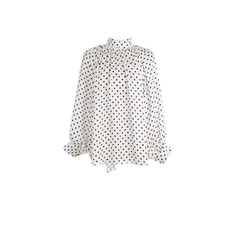 レディース シャツ ブラウス ドット柄 水玉 春 夏 秋 長袖 可愛い 大人かっこいい 大人女子 カジュアル シック ラフ エレガント キレイ系 清潔感 こなれ感 セレブ 海外 女の子 可愛い お洒落 人気 モデル 20代 30代 40代 50代 S M L XL ホワイト 白 女子大生 学生 ママ 主婦 OL 通勤 通学 オフィス オフ モテコーデ モテファッション お出かけ 飲み会 女子会 会食 フォーマル デート インスタグラム オルチャンファッション トレンド アラサー アラフォー アラフィフ