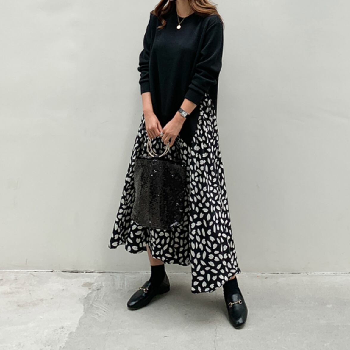 ワンピース レディース 膝下 ミモレ丈 袖あり 長袖 ラウンドネック かわいい 大人っぽ きれいめ シンプル 大人 上品 おしゃれ お洒落 かっこいい 大人可愛い 大人女子 こなれ感 ラフ ガーリー ルーズ 個性的 クール 主役級 存在感 とろみ感 抜け感 ドット 秋 冬 10代 20代 30代 レディース 女性用 学生 通学 デート お出かけ 公園デビュー 休日 旅行 着回し 普段使い 重ね着 お揃い 双子 韓国 ファッション XL 2XL 3XL 4XL 5XL ブラック ブラウン 送料無料