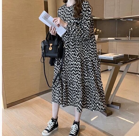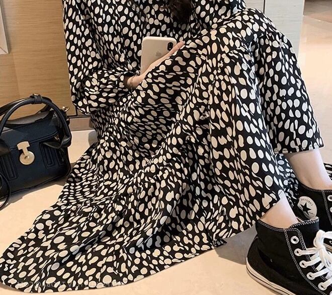 ロングワンピース スカート ワンピース ロング丈 袖あり 長袖 ラウンドネック かわいい 大人可愛い カジュアル 大人 上品 おしゃれ 大人女子 こなれ感 ラフ 主役級 存在感 10代 20代 30代 レディース 女性用 ママ 女の子 通勤 デート お出かけ 公園デビュー 女子会 お泊まり 休日 旅行 着回し 普段使い ファッション コーデ スタイル 楽ちん モテ 体系カバー プレゼント ギフト 送料無料 トレンド インスタ映え ゆったり ゆる 大人カラー 水玉 ドット柄 ブラック 黒 SNS映え