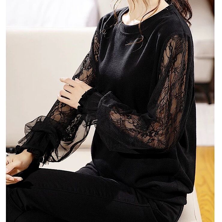 トップス レディース カットソー 丸首 レース フリル 着痩せ効果 アプリコット ブラック ママ 10代 20代 30代 40代 50代 友だち 親子 プレゼント お祝い ギフト 誕生日 誕生日プレゼント イベント デート 食事会 女子会 体型カバー 人気 話題 SNS 高見え オシャレ お洒落 可愛い 大人可愛い フェミニン エレガント ニュアンスカラー ゆったり 万能 着回し 通勤 通学 Uネック 薄手 清楚 透け感 春 秋 L XL 2XL 3XL 4XL 5XL