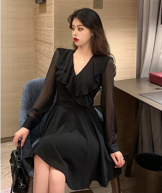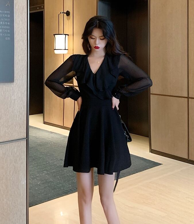 シンプルなフレアワンピース、ハイウエストで美脚効果も◎