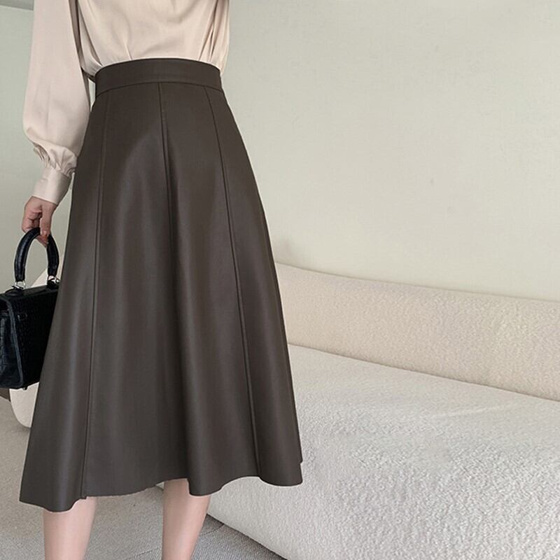 ボトムス レディース フェイクレザー スカート ミモレ ミモレ丈 ハイウエスト きれいめ シンプル 大人 上品 おしゃれ お洒落 大人女子 こなれ感 ラフ ガーリー クール モ ード系 主役級 存在感 無地 秋 冬 10代 20代 30代 レディース 女性用 ママ オフィス ビジネス 通勤 デート お出かけ 公園デビュー 女子会 お泊まり 休日 着回し 普段使い 重ね着 ファッション コーデ スタイル 楽ちん モテ 美脚 脚長 送料無料 トレンド インスタ映え ホワイト ブラック ダークベージュ