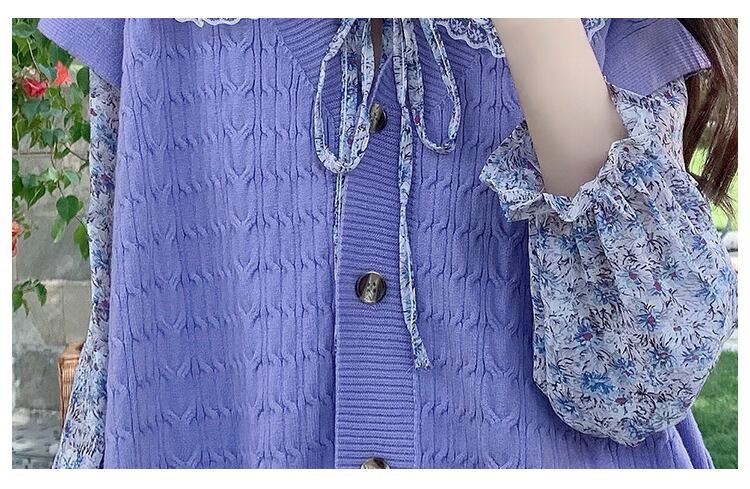 トップス ワンピース セーター 膝丈 膝下 袖あり 長袖 襟付き ニット 2点セット お得 かわいい 大人可愛い きれいめ 大人 上品 おしゃれ お洒落 大人女子 こなれ感 ラフ 主役級 存在感 花柄 小花柄 フラワー 10代 20代 30代 レディース 女性用 女の子 デート お出かけ 公園デビュー 女子会 お泊まり 休日 着回し 普段使い 重ね着 お揃い 韓国系 オルチャン ファッション コーデ スタイル 楽ちん モテ 送料無料 トレンド インスタ映え 紫 パープル ベスト SNS映え 清楚感 軽やか