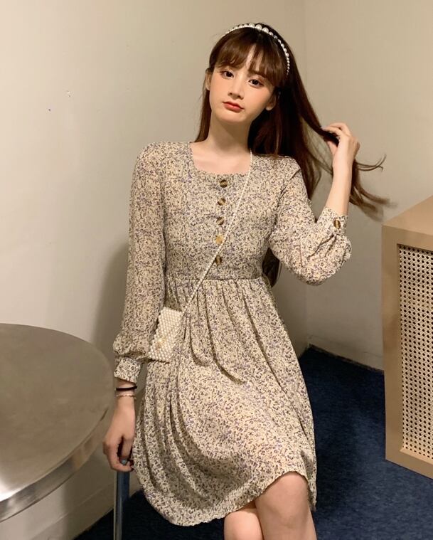 ワンピース スカート 膝丈 膝丈スカート 袖あり 長袖 膝丈ワンピース ワンピ かわいい 大人可愛い カジュアル 大人 上品 おしゃれ 大人女子 こなれ感 ラフ 主役級 存在感 10代 20代 30代 レディース 女性用 ママ 女の子 通勤 デート お出かけ 公園デビュー 女子会 お泊まり 休日 旅行 着回し 普段使い ファッション コーデ スタイル 楽ちん モテ 体系カバー プレゼント ギフト 送料無料 トレンド インスタ映え ゆったり ゆる 大人カラー 花柄 小花柄 フラワー 派手 ボタン付き ボタン