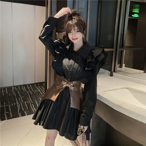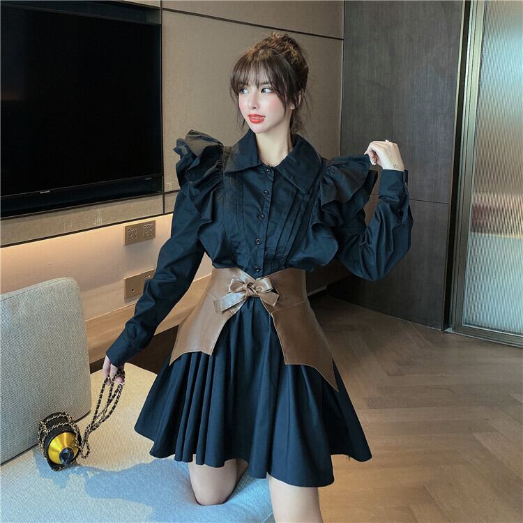 ワンピース レディース シャツワンピース ショート ショート丈 袖あり 長袖 ボリューム袖 パフスリーブ リボン ベルト ウエストリボン 2点セット かわいい 大人可愛い おしゃれ 大人女子 こなれ感 ガーリー 個性的 モード系 主役級 存在感 10代 20代 30代 レディース 女性用 学生 通学 デート お出かけ 公園デビュー 女子会 お泊まり 休日 着回し 普段使い 重ね着 韓国系 ファッション コーデ スタイル モテ 体系カバー 美脚 脚長 送料無料 トレンド インスタ映え ホワイト ブラック