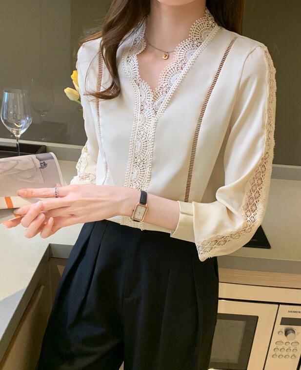 レディース トップス シャツ ブラウス 袖あり 長袖 レース Vネック プルオーバー スリム 細身 シフォン かわいい 大人可愛い きれいめ 大人 大人女子 大人っぽ 上品 清楚 セクシー おしゃれ お洒落 レトロ キュート フェミニン ガーリー ラブリー スイート 女っぽ 主役級 存在感 フェミニンスタイル 無地 春 秋 冬 カジュアル ファッション コーデ 通勤 仕事 オフィス OL デート お出かけ ランチ 着回し 大きいサイズ S M L XL 2XL アプリコット ブルー
